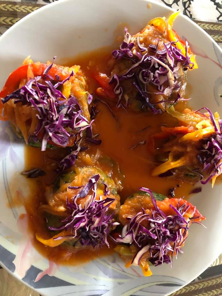 The steak:-Boil and mash the sweet potatoes. Add chopped spinach, green chilies, cumin powder, salt, paprika and any herbs of your choice.