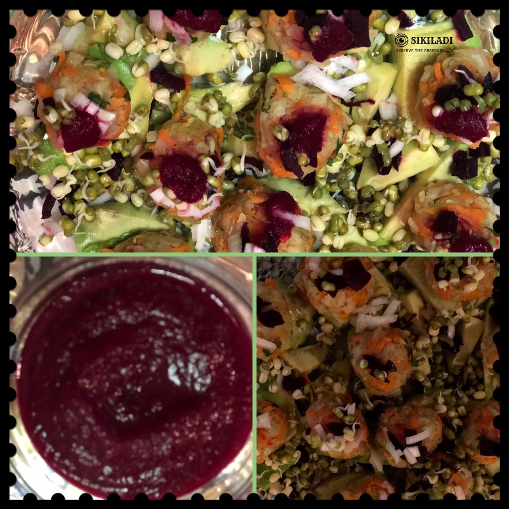 Cabbage and Carrot balls with beetroot dressing