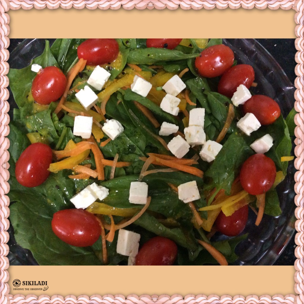 A simple yet refreshing salad that goes well with burgers, with pasta, with Indian meals, with kebabs or any other meal.