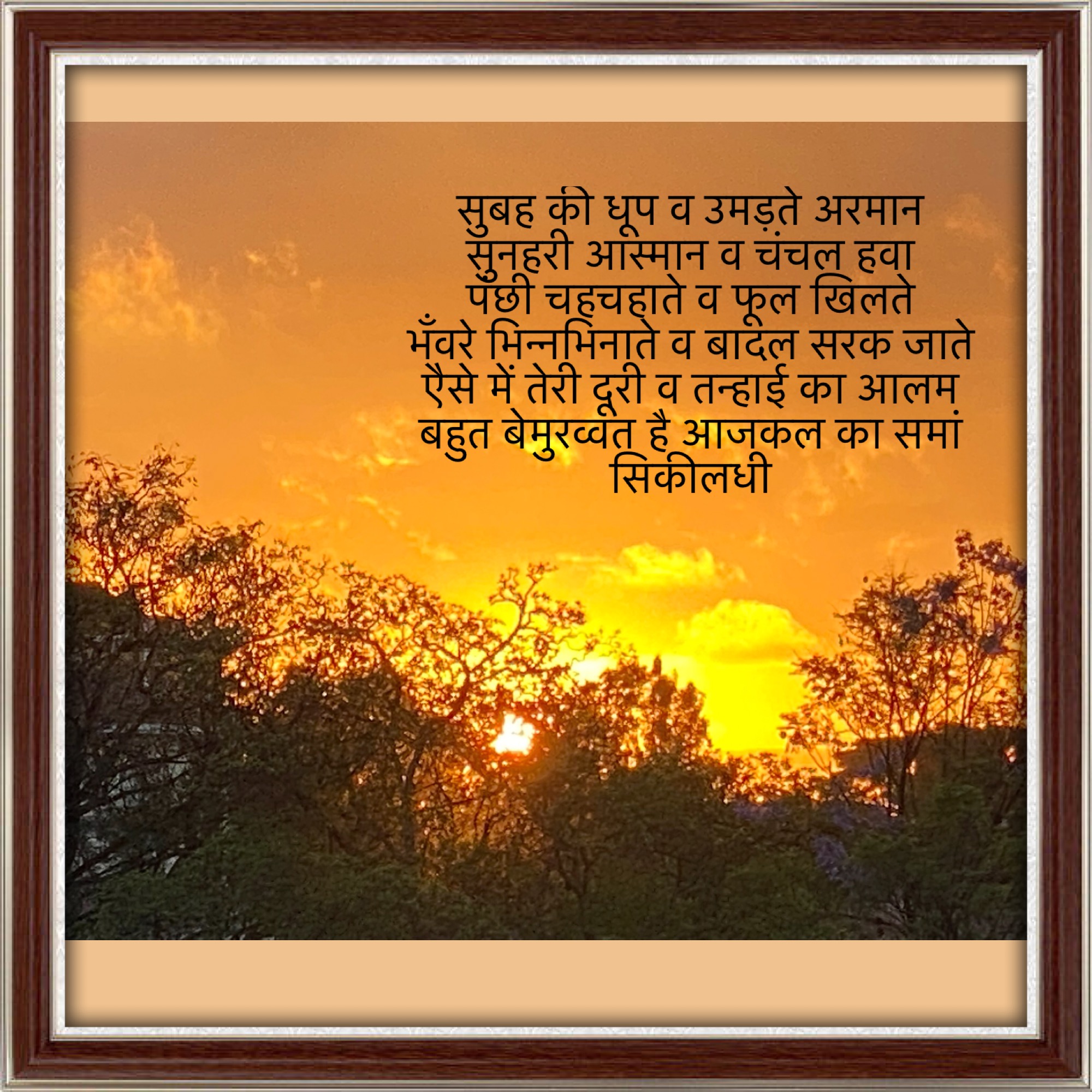 आजकल का समां Image ~ October 26, 2020 ~ Sikiladi Share this: Click to share on X (Opens in new window) X Click to share on Facebook (Opens in new window) Facebook Like Loading... Related