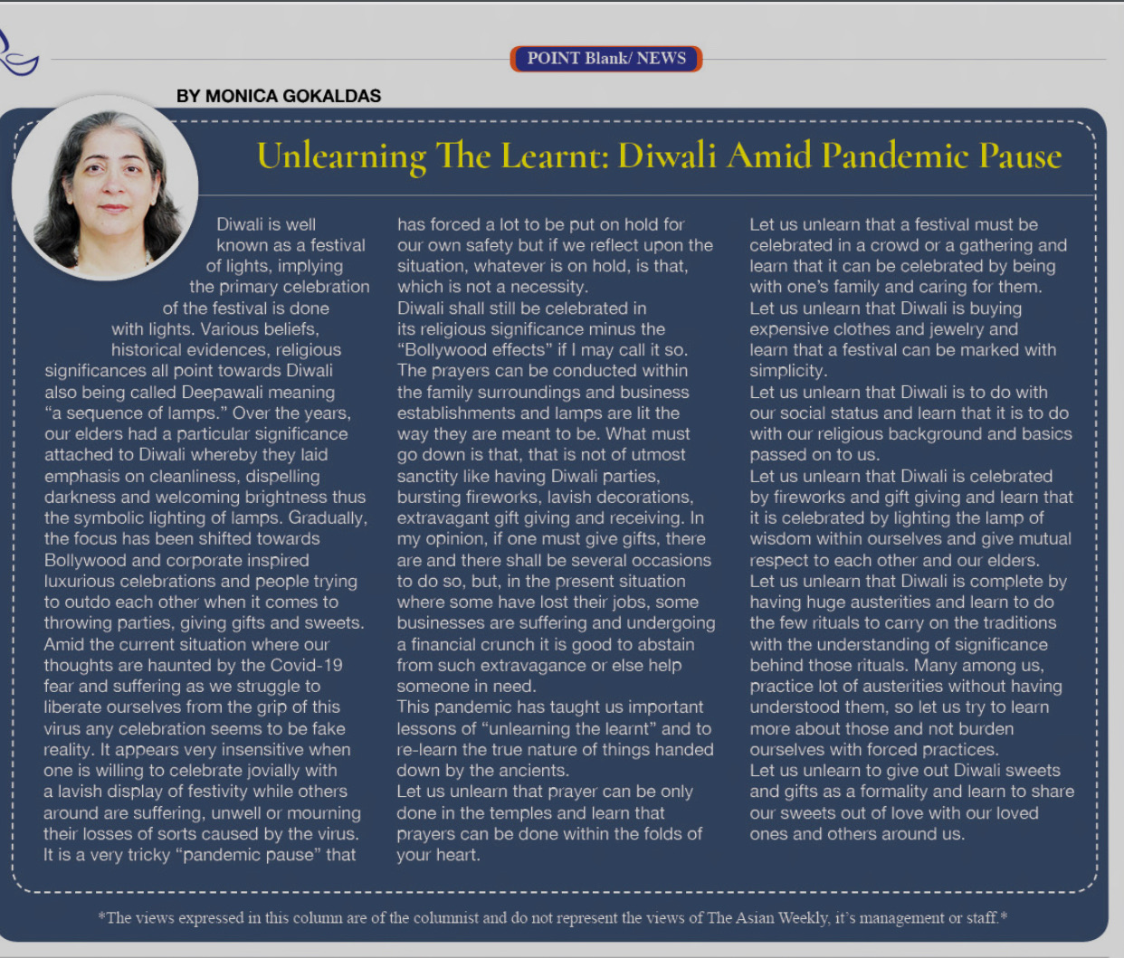 UNLEARNING THE LEARNT: Diwali amid Pandemic Pause