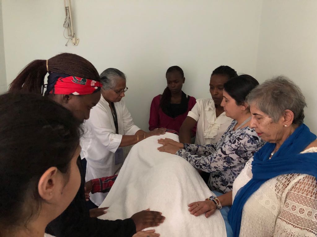 With reiki, prayer and staying in.