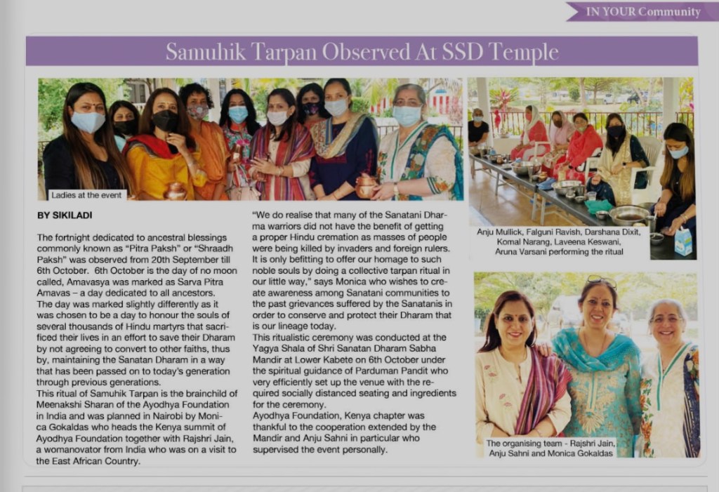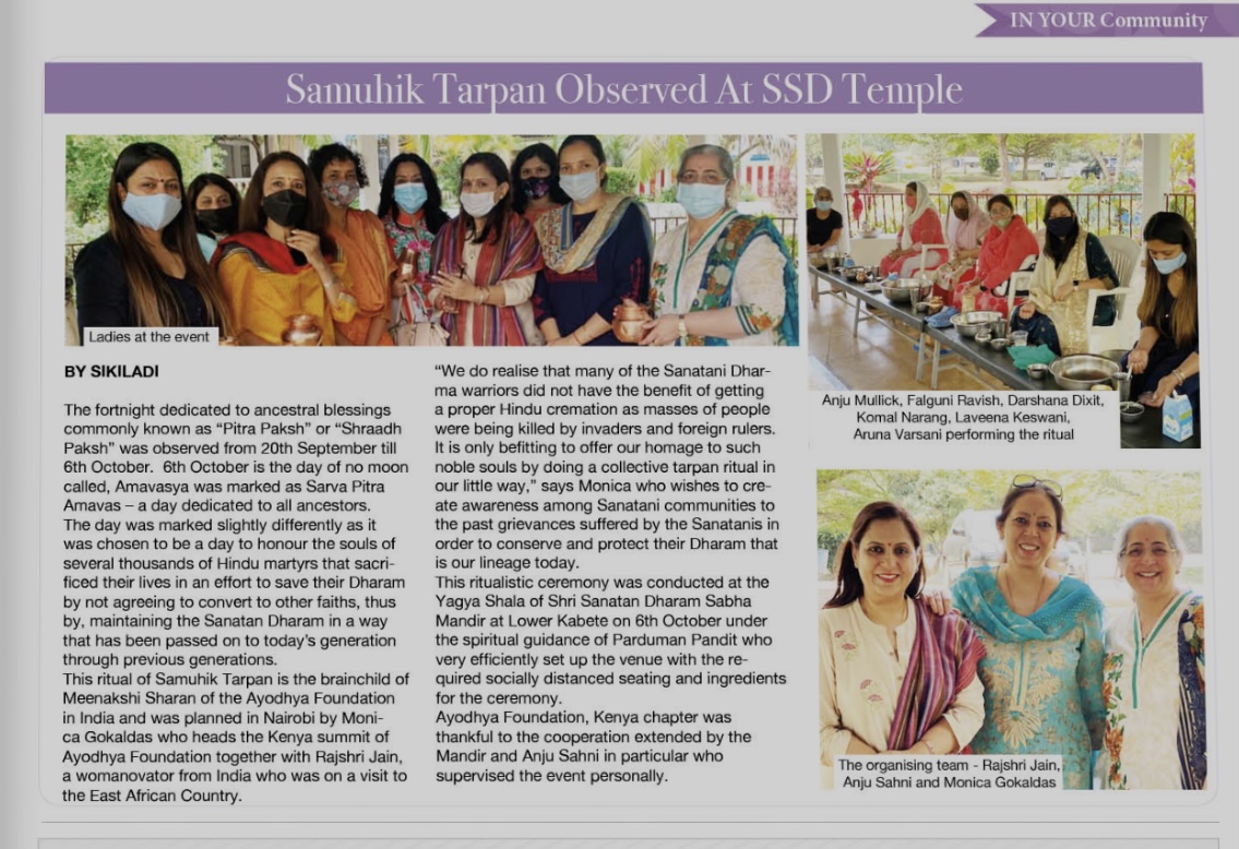 Samuhik Tarpan 2021 October 25, 2021October 25, 2021 ~ Sikiladi The symbolic Sesame seeds and diluted milk as an offer during the ritual The preparation at the SSDS Mandir’s yagya shala Being ritualistic amid covid protocols The oblations at the Peepal tree The Samuhik Tarpan by various groups led by Pt. Praduman Published in The Asian Weekly, Edition 580, (October 15 – 21, 2021) Share this: Click to share on X (Opens in new window) X Click to share on Facebook (Opens in new window) Facebook Like Loading... Related