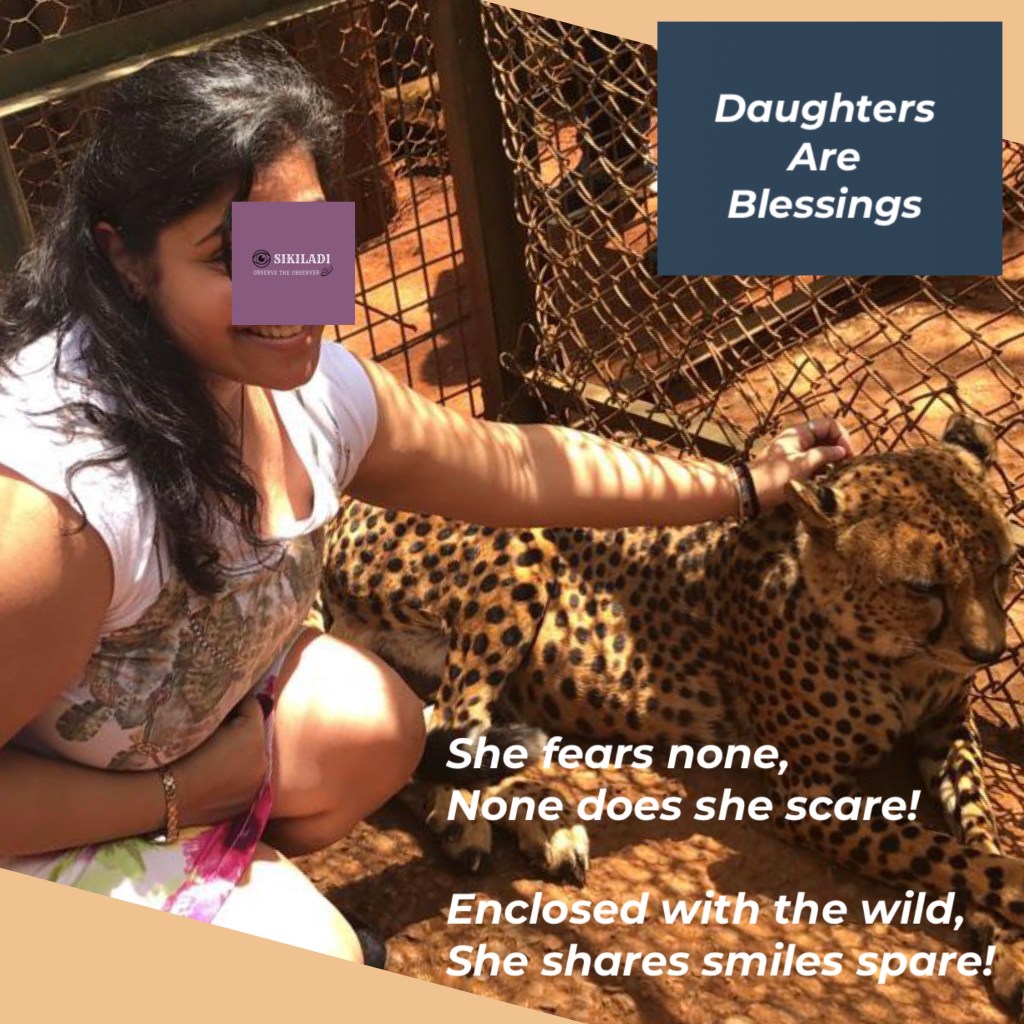 Daughters are Blessings: 2 Image ~ December 11, 2022 ~ Sikiladi Daughters are Blessings! Continuing with the series here’s yet another appreciation for daughters.They are fragile yet when you nurture them with self confidence they are fearless Goddesses. Share this: Click to share on X (Opens in new window) X Click to share on Facebook (Opens in new window) Facebook Like Loading... Related