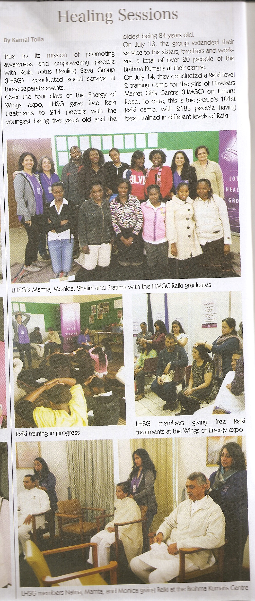 True to our mission of promoting the awareness of Reiki, all visitors were given a short talk on our Seva activities over the past 11 years, our projects in different parts of Kenya, and the workshops and courses we offer. And then, we offered FREE Reiki treatments to one and all. Not only did each recipient feel good after the treatment, they came back for more and more Reiki over the four days, and they spread the word with their friends and family and neighbours who also came to experience the gentle healing effect of Reiki. We were visited by people from Kenya, Sierra Leone, Ghana, Mozambique, South Africa, Zimbabwe, Nigeria, Uganda, Ethiopia, India and other countries. A number of them registered for Reiki training courses. The patients on chairs, receiving healing, were so many, that spilling over from the LHSG stand into the corridor became a common sight at the exhibition.