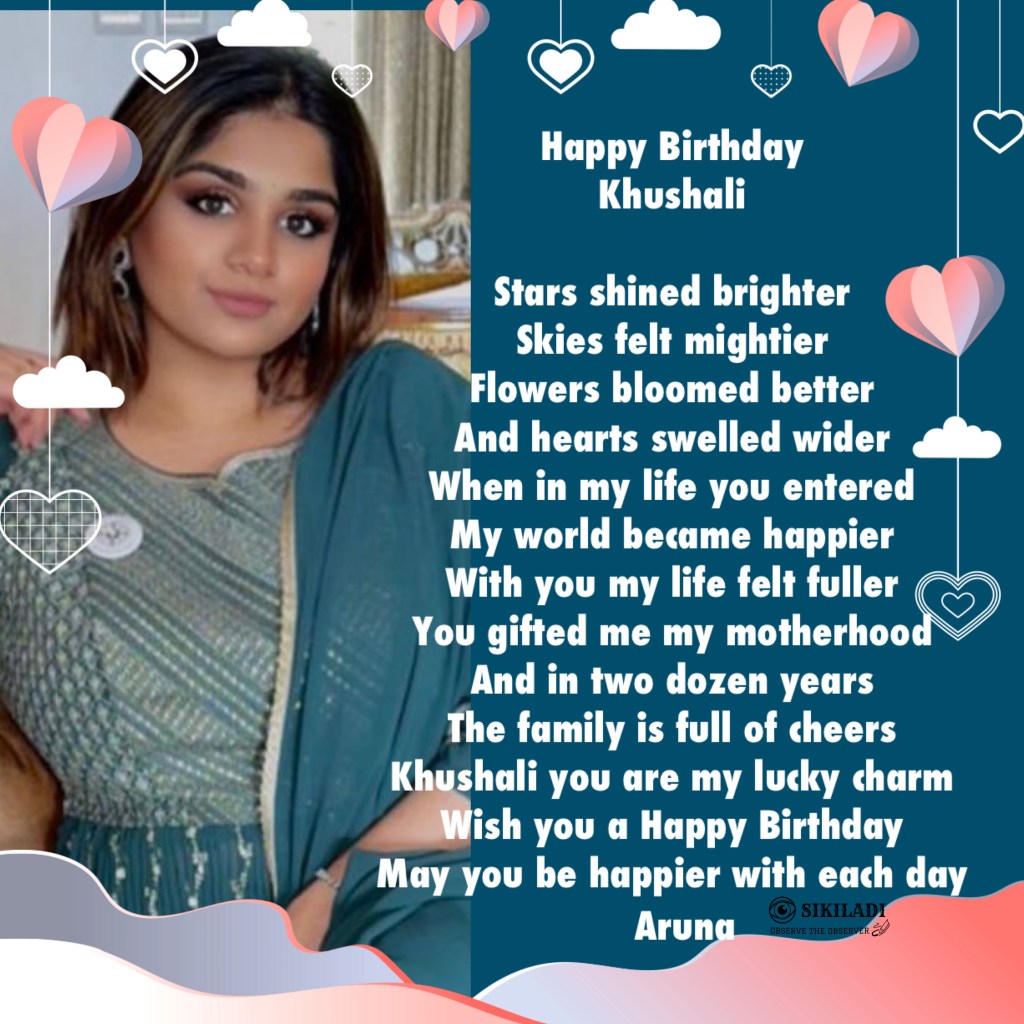 Birthday Greetings! Image ~ November 14, 2023 ~ Sikiladi A pleasure in penning a poem greeting a daughter from her mother: This for a friend who wanted me to pen down greetings for her daughter. Share this: Click to share on X (Opens in new window) X Click to share on Facebook (Opens in new window) Facebook Like Loading... Related