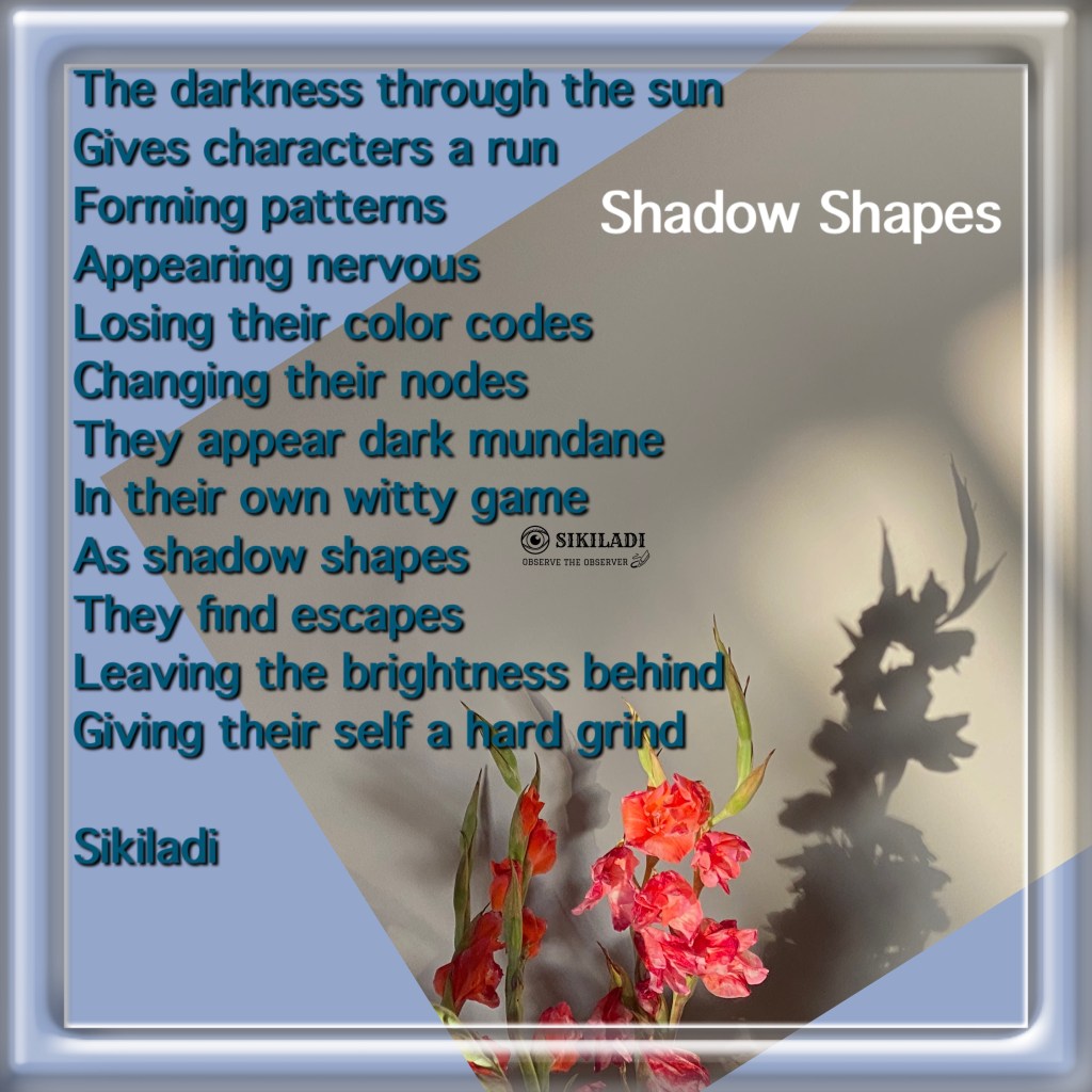Shadow Shapes! Image ~ January 24, 2024 ~ Sikiladi Imagery is a vital feature of many a poetries. Nature inspires a poet to find connectivity in emotions. Above poetry is a feeble example of the same. Share this: Click to share on X (Opens in new window) X Click to share on Facebook (Opens in new window) Facebook Like Loading... Related