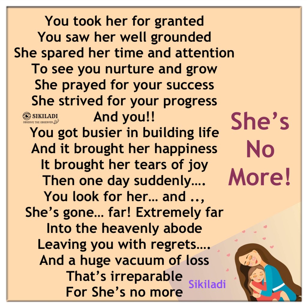 She’s No More! Image ~ January 31, 2024 ~ Sikiladi Share this: Click to share on X (Opens in new window) X Click to share on Facebook (Opens in new window) Facebook Like Loading... Related