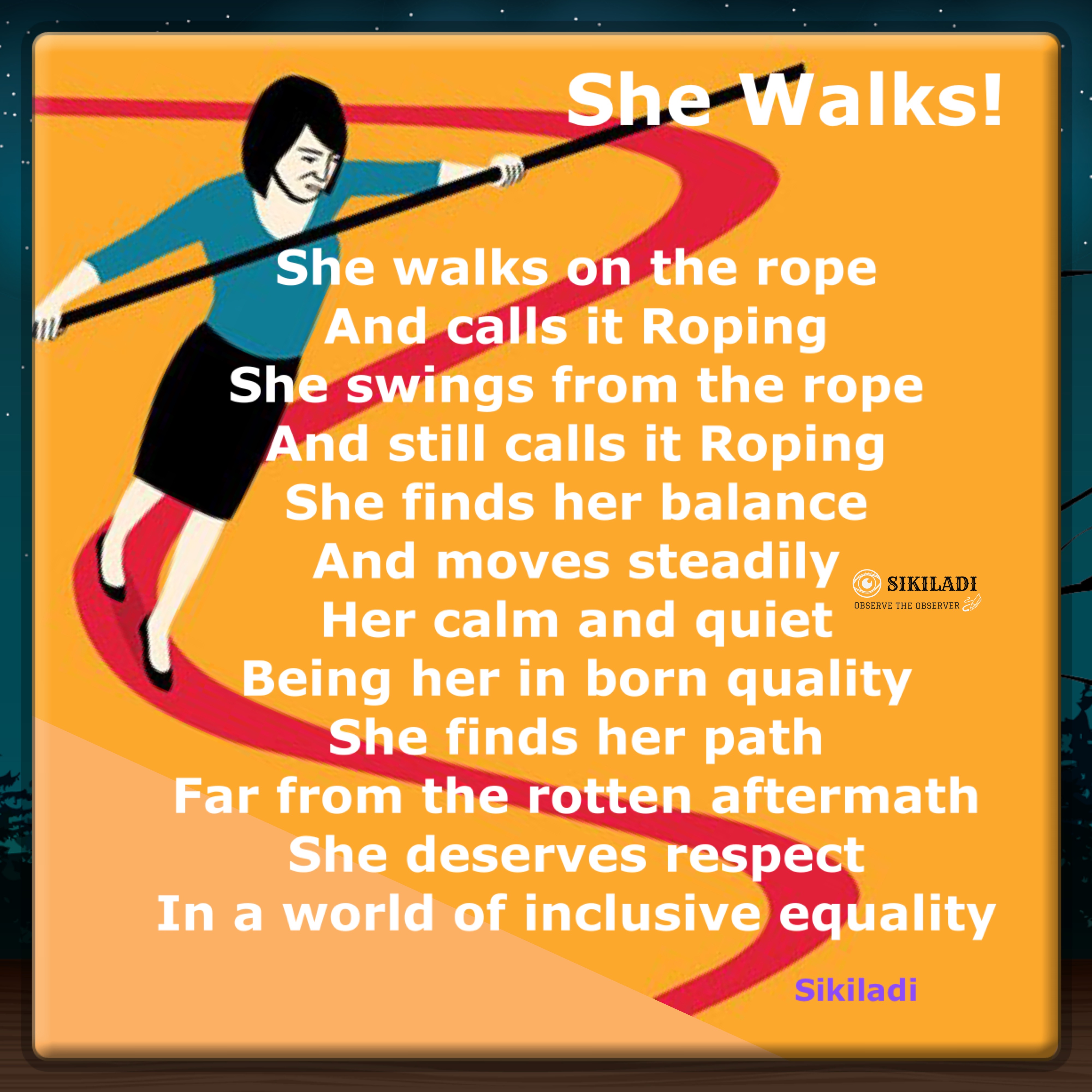 She Walks! Image ~ March 16, 2024 ~ Sikiladi Share this: Click to share on X (Opens in new window) X Click to share on Facebook (Opens in new window) Facebook Like Loading... Related