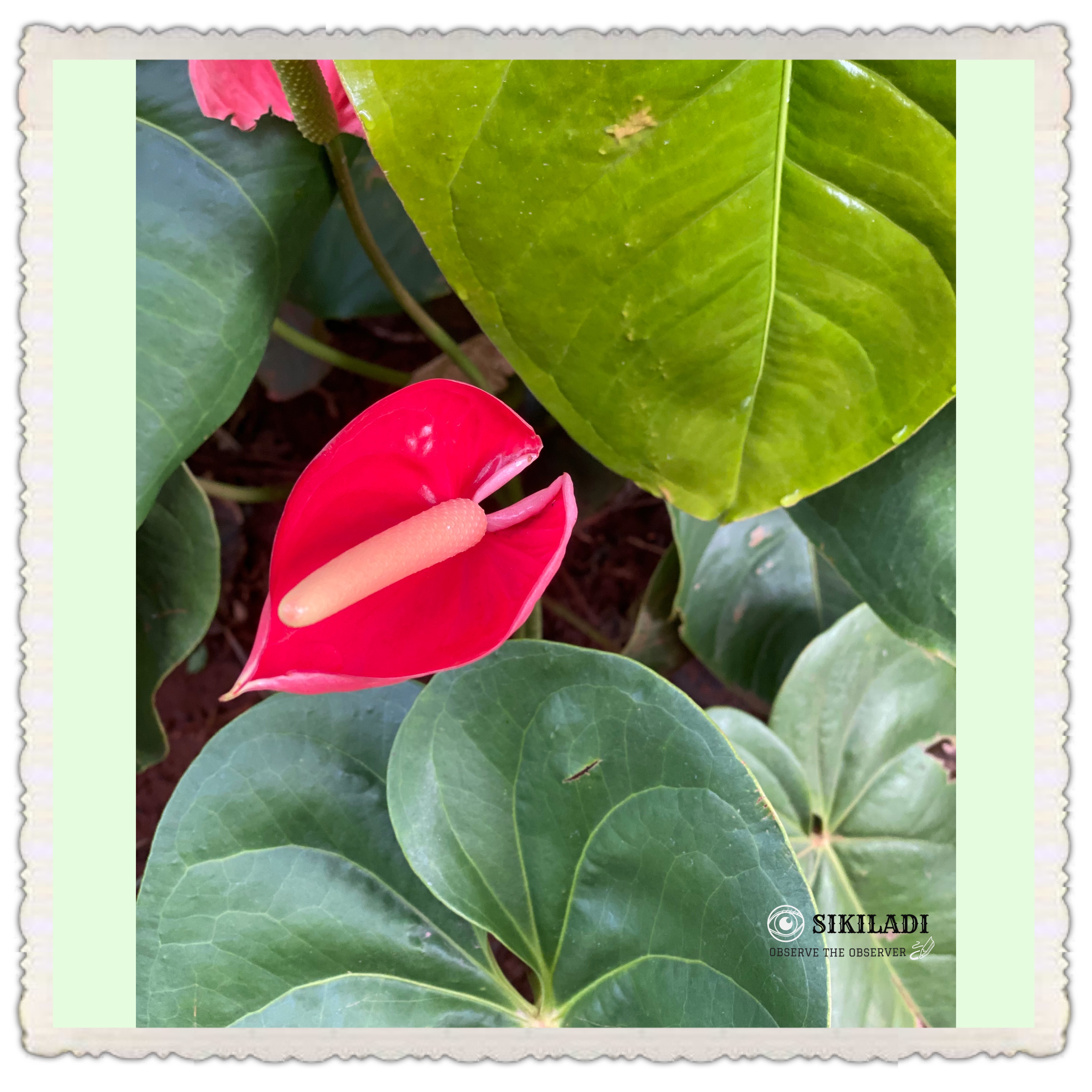 Nature’s Trail (109) June 7, 2024June 5, 2024 ~ Sikiladi Anthurium! Bright, bold and blood red Adding charm to the greens Sturdy flower in garden patch Leafy satiny pleasing appeals Sikiladi Share this: Click to share on X (Opens in new window) X Click to share on Facebook (Opens in new window) Facebook Like Loading... Related