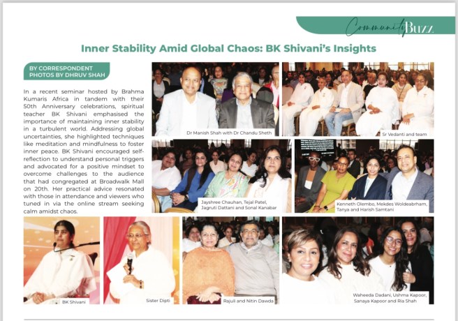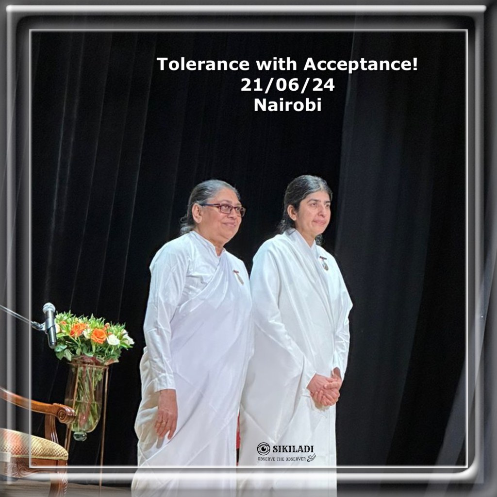 BK Shivani’s discourse on 21st June in Nairobi addressed the issue of Tolerance and Acceptance in equal measure. Shared here are some take away points from the discourse.