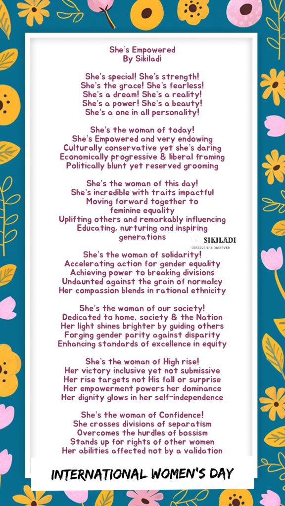 She’s Empowered (Women’s Day) March 7, 2025March 7, 2025 ~ Sikiladi Published in The Asian Weekly, Edition 757 ( March 7th to 13th, 2025) Share this: Click to share on X (Opens in new window) X Click to share on Facebook (Opens in new window) Facebook Like Loading... Related