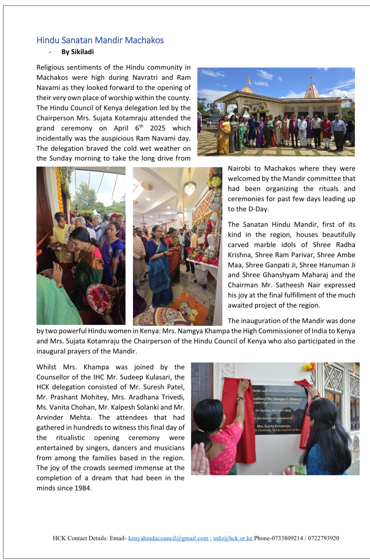 HCK at Hindu Sanatan Mandir Image ~ May 6, 2025May 5, 2025 ~ Sikiladi Published in April 2025 Edition of Hindu Deep by Hindu Council of Kenya Share this: Click to share on X (Opens in new window) X Click to share on Facebook (Opens in new window) Facebook Like Loading... Related