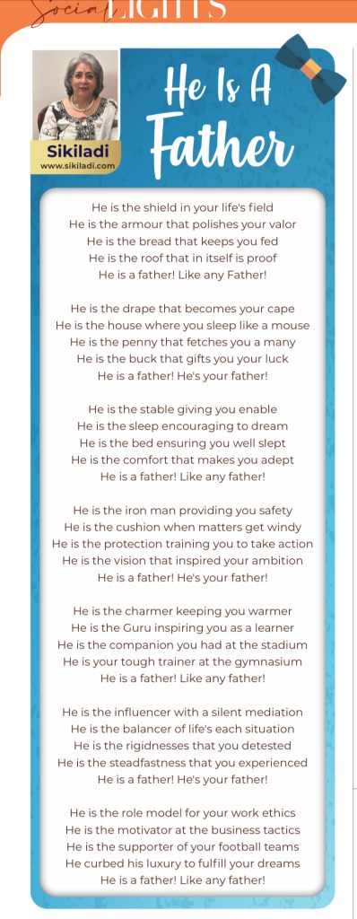 He is a Father! (Father’s Day) June 15, 2025 ~ Sikiladi Published in The Asian Weekly, Edition 771 ( 13th June to 19th, 2025) Share this: Click to share on X (Opens in new window) X Click to share on Facebook (Opens in new window) Facebook Like Loading... Related