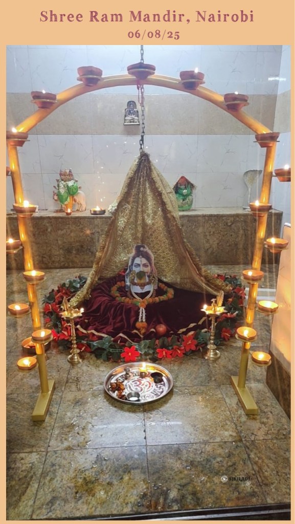 Jai Shiv Shambhu Image ~ August 6, 2025 ~ Sikiladi Shivling Darshan Jai Shiv Shambu Har Har Shambhu , Deva Mahadeva Shambhu Shree Ram Mandir, Nairobi courtesy: Pandit Rajendra Payasi Share this: Click to share on X (Opens in new window) X Click to share on Facebook (Opens in new window) Facebook Like Loading... Related