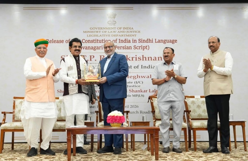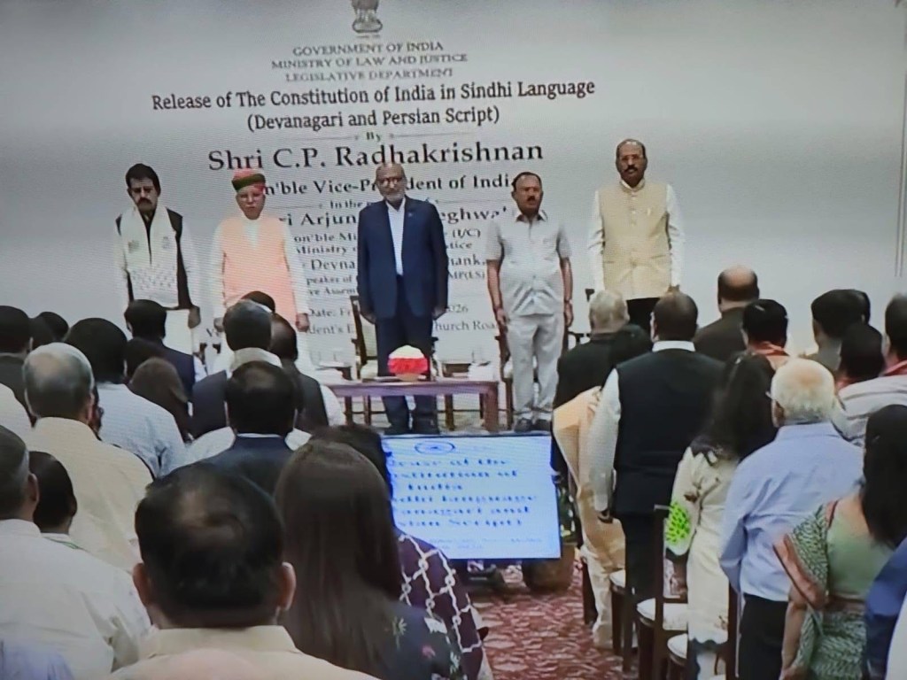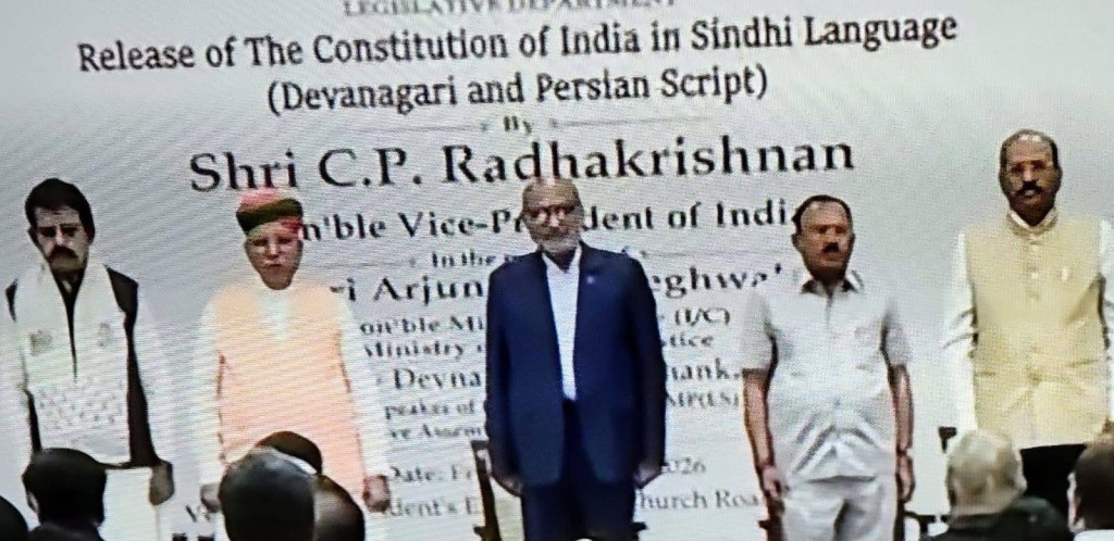 आज दिल्ली के उपराष्ट्रपति भवन में कुछ वक्त पहले संविधान के सिंधी देवनागरी भाषा में अनुवाद का विमोचन माननीय उपराष्ट्रपति श्री सी पी राधाकृष्ण जी के कर कमलों से किया गया । मंच पर उपराष्ट्रपति जी के अतिरिक्त केंद्रीय मंत्री श्री अर्जुन मेघवाल , राजस्थान विधान सभा अध्यक्ष प्रो. वासुदेव देवनानी, सांसद शंकर लालवानी आदि विराजमान रहे ।
