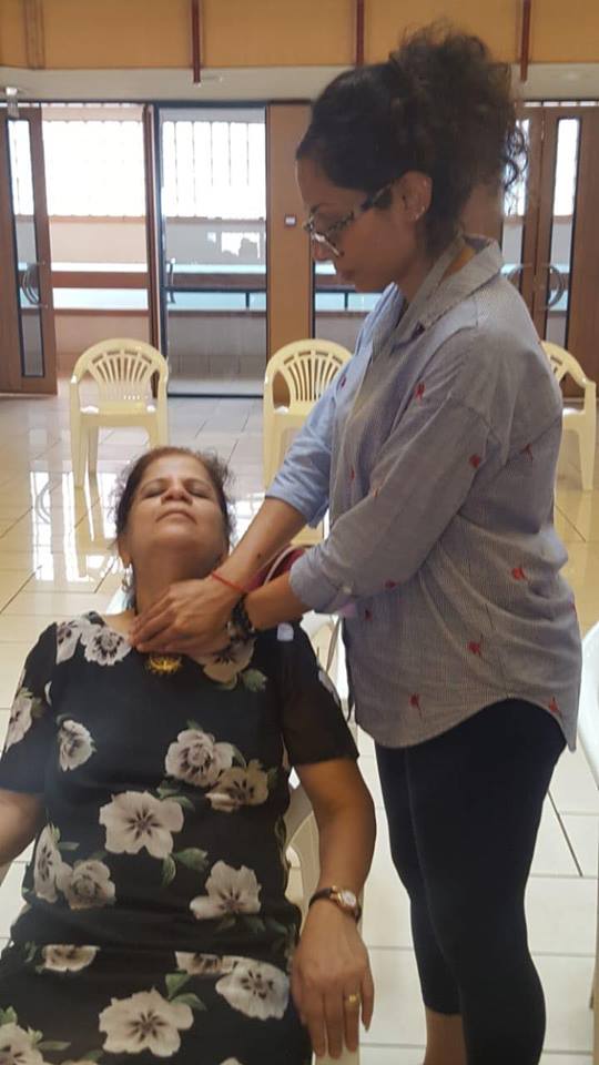 Simmi Bodani recieves Reiki from Vaishali Patel